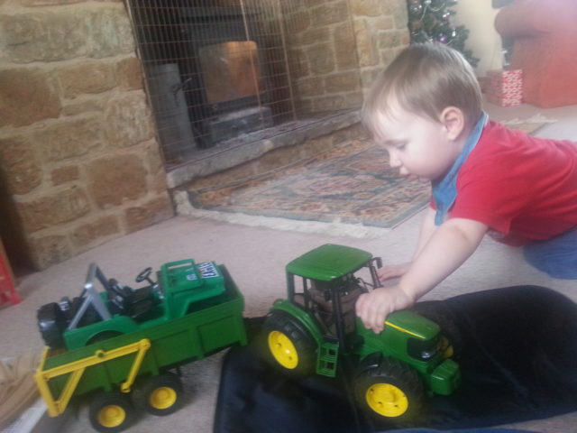 He had, unsurprisingly quite a lot of tractor themed items, so I’m sure once he gets round to properly playing and using all his gifts, he’ll become even more obsessed. And really good at jigsaws (one of his new favourite words), as he had a few of those too.