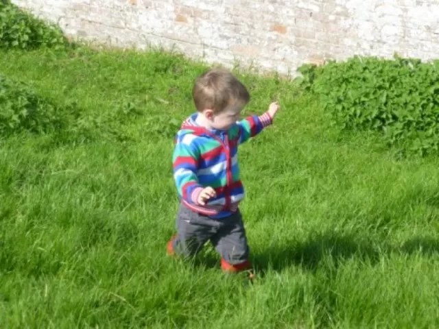 Anywhere with lots of green space attracts N. I wanted to head to see the deer first but we didn’t actually reach their field. First N had to investigate the ‘moat’ area in front of the gate house and gardens. I was a bit concerned at how steep it was, but he’s really got his confidence in his physical ability, and had no problem, walking down to the bottom, then climbing back up and wandering along half way up the sides.