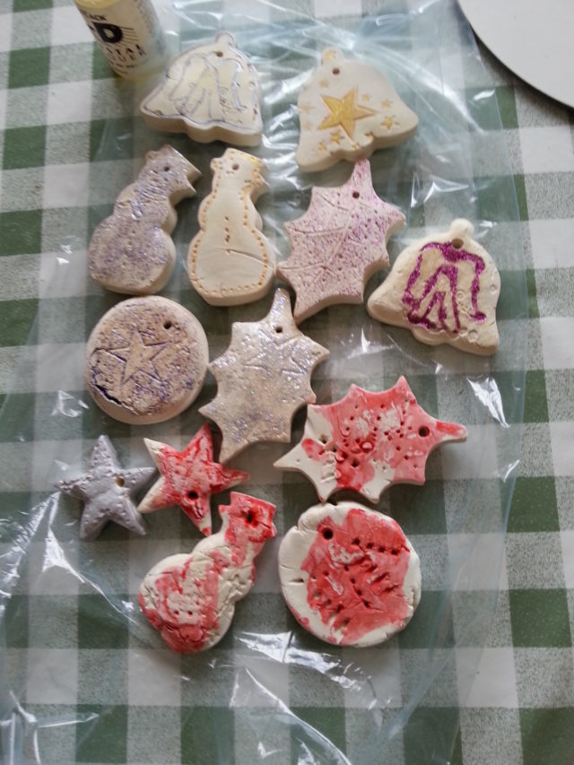 1. Not quite salt dough decorations. I saw these on Pinterest. First attempt failed as I forgot to click into the actual instructions so failed to read that the cornflour, bicarb and water needed to be on a medium heat to thicken! But the second attempt was great. I couldn’t find any of my small craft paints, so N only had gloopy finger paint to use…seemed to work fine though.