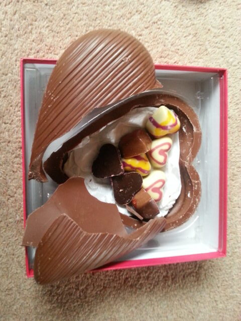 The Open Your Heart to Me box includes a milk chocolate shell heart, with 8 chocolate hearts. The box itself is gorgeous, very classy and contemporary. The courier driver obviously wasn’t the best driver as the shell was broken on delivery, but I guess most people buying gifts would buy in store – would definitely recommend that as although the brown box (filled with gorgeous pink shredded paper) was marked fragile, it didn’t help.