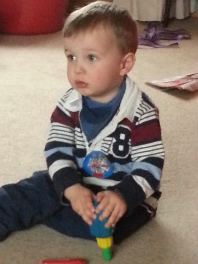 Today he was in navy trousers – am wondering whether there’s just too much navy in his wardrobe as although I buy colours, I find there’s a lot of navy on the bottom half to contrast the top half with! And a scrummy (hmm, apologies) rugby top. I love him in stripes and anything collared seems to suit him well, although his dribble bibs don’t work so well with those.